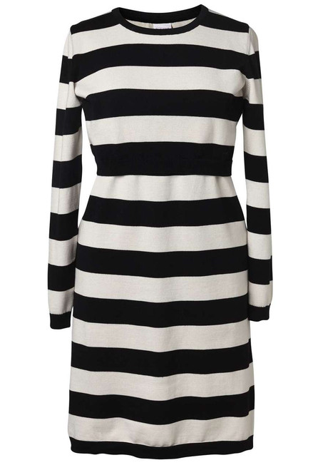 Fine-knit dress with double function for pregnany and nursing. Round neck and long sleeve. Soft, comfortable fabric in certified organic cotton.