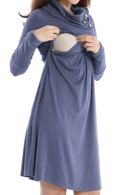 Constructed with empire-line access, nursing in this dress is discreet and a breeze to use. Inner lining extends from empire “opening” to neckline so as to minimize accidental exposures. Recommended for the first-time nursing mom. One simple motion - pull band upwards and you're ready to feed!